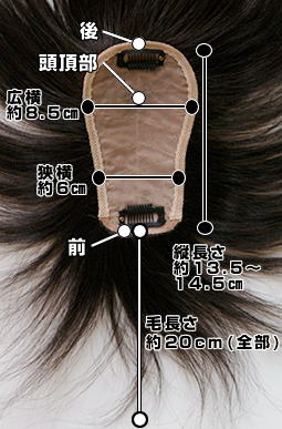 横方向(一番細い所)約6センチ・約8.5センチ程度(一番広いつむじ付近)